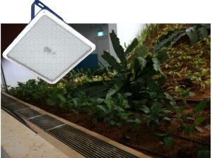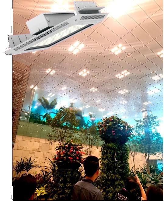 The picture on right exhibits the indoor planters that scatter within a common area of airport lobby. The standard size of a planters’ pot measures 3m x 9m with grown plants of approximately 4.5 meter high. The planters’ pots are placed under 13.5 meters high false ceiling from which 6 units of recessed grow lights are proposed to be installed, to provide adequate photon flux for chlorophyll absorbance of photosynthetic cells.