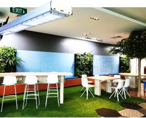 Three sets of green walls were built in a mobile phone sales reception office in Singapore. Each set of green wall, measuring 2.7 meters width by 2.4 meters height were installed in between the white boards.